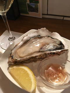 まず最初は生牡蠣を。店員さんに「宮城産のいいのが入っていますよ」とおすすめされたので、迷わず注文してみました。大粒の牡蠣は、一口でツルっと口に入りました。何個でも食べれそうです。