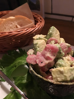 こちらは「中落ちマグロ」のアボカドタルタルソース和え。タルタルソースの酸味が、マグロとアボカドによく合いますね。これはお酒がすすみます。結構ボリュームもあります。