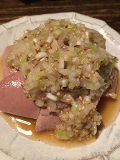 ごま油の香りが効いていて、美味いです。レバーは軽く下茹でしてありますが、中はレアです、大きくて食べ応えがあります。