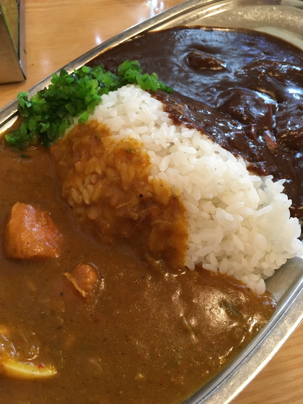 The front yellow one, chicken curry and the one of the thick color are beef curry. It’s better to come out by the capacity of the traditional silver aluminum, isn’t it? I also get on a boiled egg, but I sink in roux and don’t see.