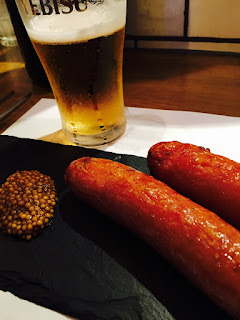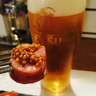 Il a commandé des saucisses grillées à la viande. C’est un menu que vous commandez sans faute. Il y a deux grandes saucisses qui mesurent environ 15 cm de long. avec de la bière. La prochaine chose que j’ai commandé était le maquereau fumé. Recommandé pour le pot de vin! Et vous devez le commander.