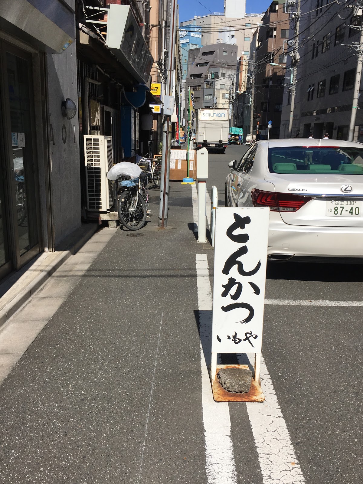 今日は馬喰横山でお仕事です。と、打合せ前に腹ごしらえをと思いたち、清洲橋通りをぶらぶらしているといきなり「とんかつ いもや」の立て看板が目に入ってきましたよ。