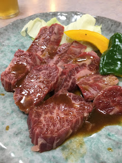 Here, “roast meat Eirakuen”. The store on the opposite side of Sumiyoshi-jinja along Sumiyoshi street. When living in Hakata, it was neighborhood, so I had often come. It’s yellowtail half year. You were happy to have noticed with voice of the telephone of reservation, right? I had luck of a taxi hurry. It’ll be unbearable any more, I’d like to eat early!