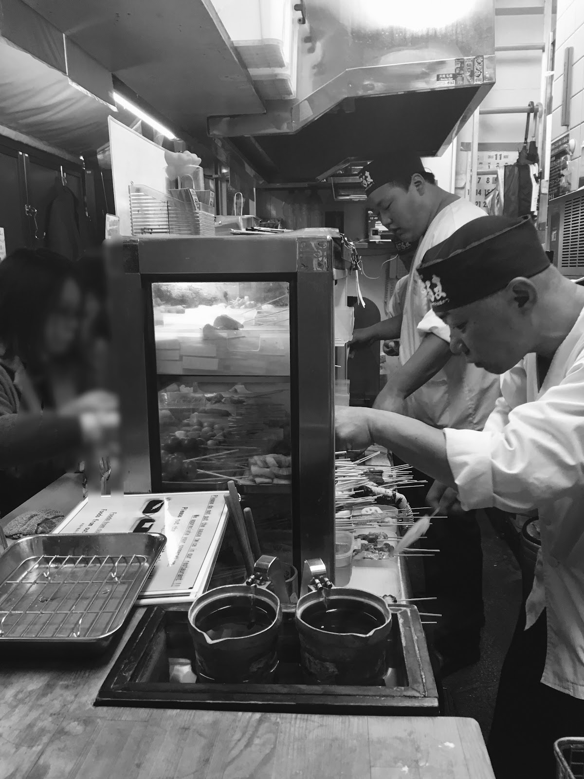 まずはこちら 「串かつだるま総本店」へ。ここはガイドブックにも載っている有名店です。すでに5組程の行列が出来ていました。およそ40分程で中に入れました。